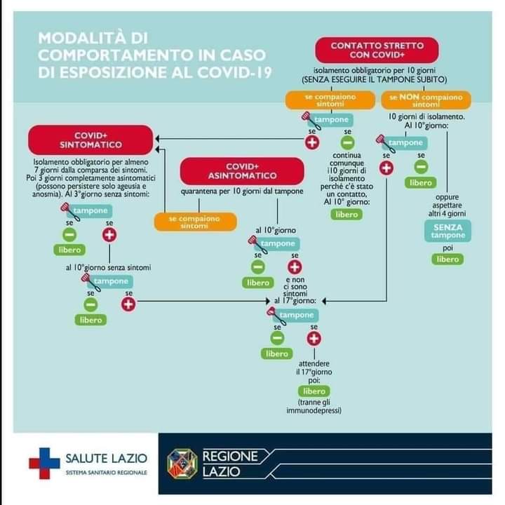 1. Positivo asintomatico: Le persone asintomatiche risultate positive alla ricerca di SARS-CoV-2 possono rientrare in comunità dopo un periodo di isolamento di almeno 10 giorni dalla comparsa della positività, al termine del quale risulti eseguito un test molecolare con risultato negativo (10 giorni + test).