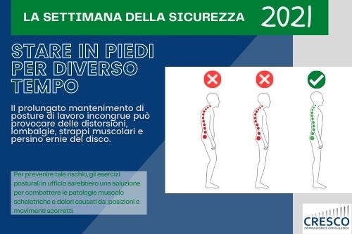 Il prolungato mantenimento di posture di lavoro incongrue può provocare delle distorsioni, lombalgie, strappi muscolari e persino ernie del disco. Per prevenire tale rischio, gli esercizi posturali in ufficio sarebbero una soluzione per combattere i disturbi muscolo scheletrici (DMS) e dolori causati da posizioni e movimenti scorretti. Di regola il datore di lavoro è responsabile dell’organizzazione ergonomica del lavoro. A lungo termine, stare continuamente in piedi influisce in modo negativo sul portamento, volta plantare, circolazione delle gambe e vene. Questo comporta assenze per malattia e genera costi pesanti, non soltanto per il singolo lavoratore ma anche per il datore di lavoro. Ci sono delle soluzioni che possono essere adottate a lavoro attraverso alcuni brevi esercizi di rilassamento. Di seguito ci sono alcune misure che possono tornare utili: