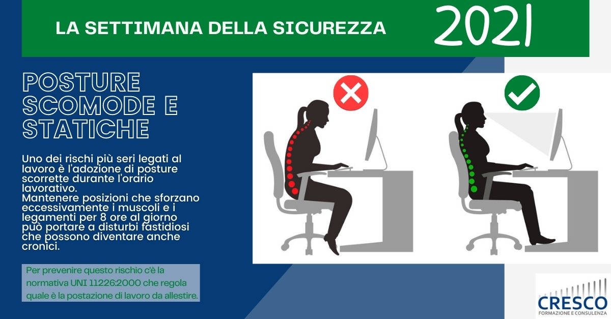 Uno dei rischi più seri legati al lavoro è l’adozione di posture scorrette durante l’orario lavorativo. Mantenere delle posizioni che sforzano eccessivamente i muscoli e i legamenti per 8 ore al giorno può portare a disturbi fastidiosi che possono diventare anche cronici.
