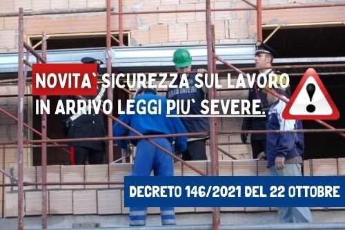 Lo scorso 22/10/2021 è stato emanato il decreto 146/2021 contenente le disposizioni in materia di salute e sicurezza sul lavoro. In particolare si è sottolineata l’importanza delle troppi morti bianche che purtroppo hanno caratterizzato questo 2021.